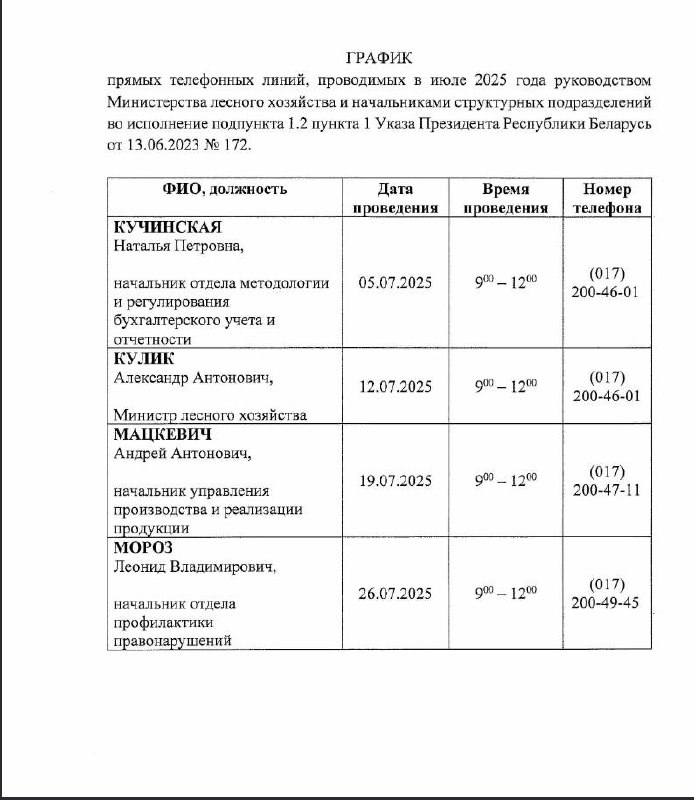 РУКОВОДСТВО МИНИСТЕРСТВА ЛЕСНОГО ХОЗЯЙСТВА РЕСПУБЛИКИ БЕЛАРУСЬ