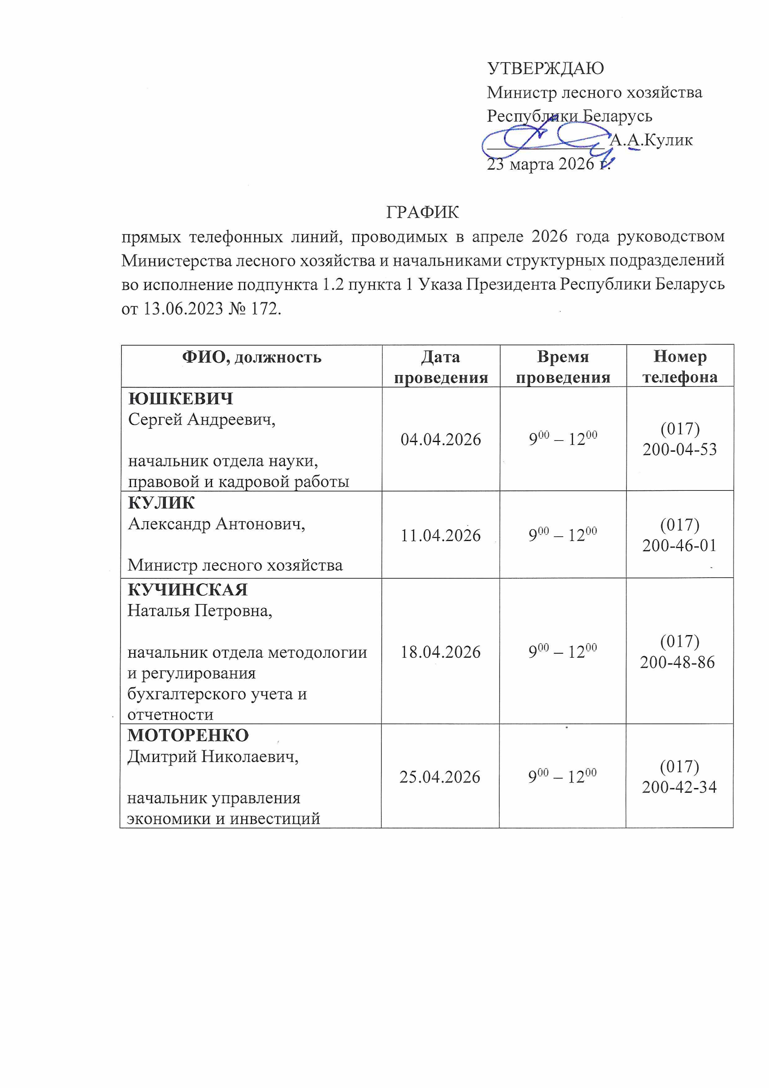 РУКОВОДСТВО МИНИСТЕРСТВА ЛЕСНОГО ХОЗЯЙСТВА РЕСПУБЛИКИ БЕЛАРУСЬ