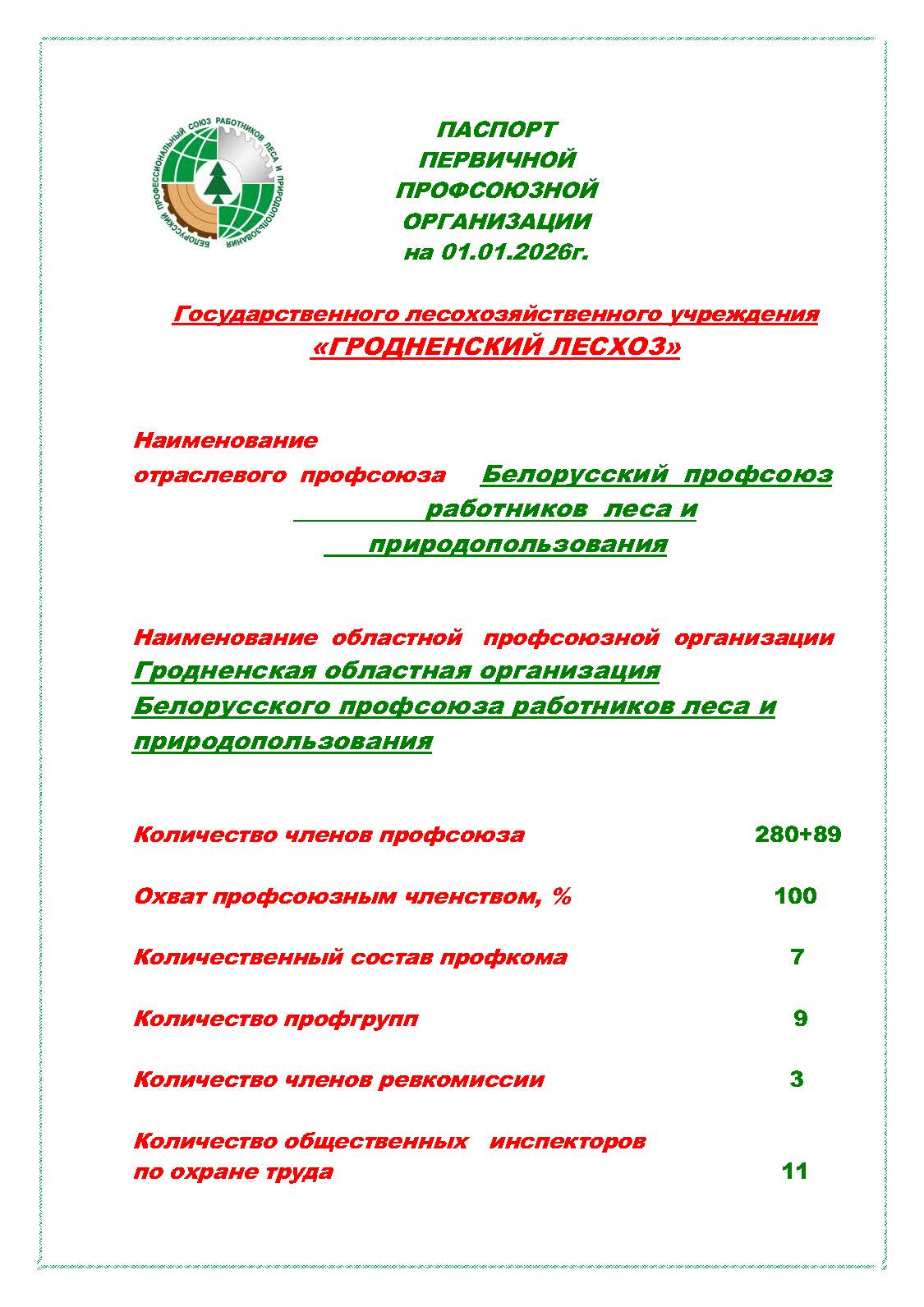 Паспорт первичной профсоюзной организации